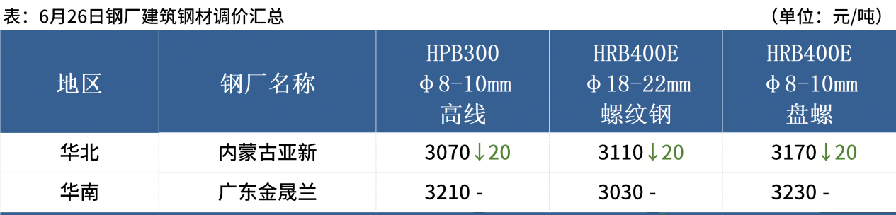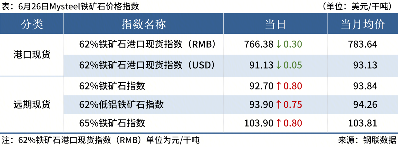 ◎ 6月26日,全國主港鐵礦石成交87.20萬噸,環(huán)比減19%;237家主流貿(mào)易商建筑鋼材成交9.93萬噸,環(huán)比增6.2%。